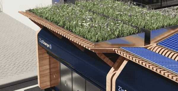 同时,在其顶上还配有太阳能和风力发电系统给里面的充电宝充电;甚至顶部模块也可以用来种植绿化,将绿色环保进行到底。