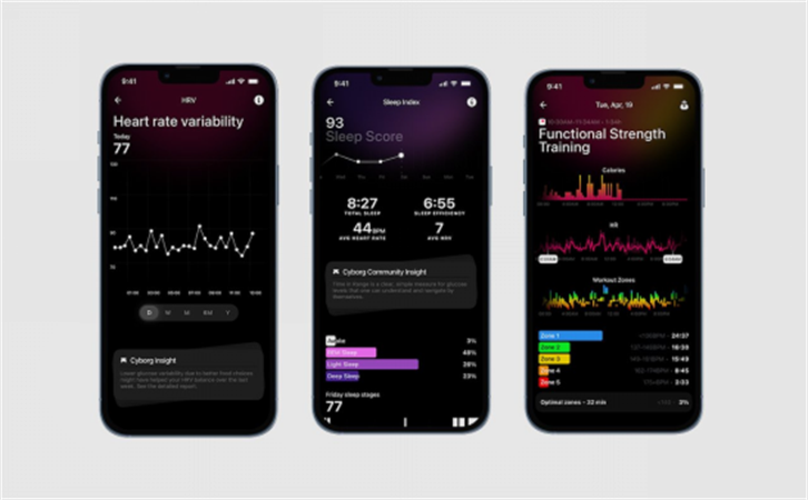 如今几乎所有的智能手表和健身追踪器都会显示一些数据,如佩戴者的心率、所走的步数、睡眠时间、血氧水平等等。其中一些数据已经可以表明你的身体出现了问题,但孤立地看,它们并不能真正给你一个更深入和更全面的健康视图。相比之下,Ultrahuman Ring不仅可以测量其中一些相同的代谢生物标志物,如心率变异性、温度和睡眠。它还将它们解释为更容易理解的东西,更重要的是,更容易采取行动。